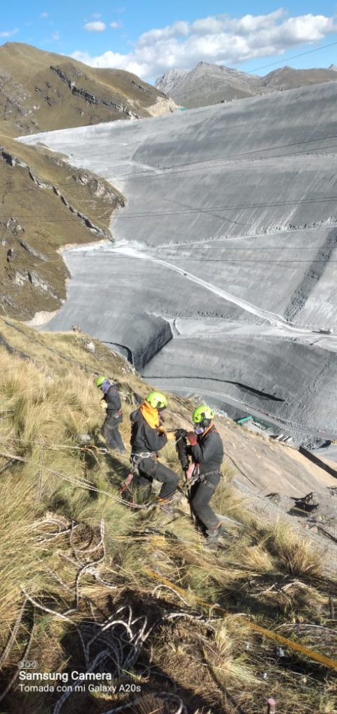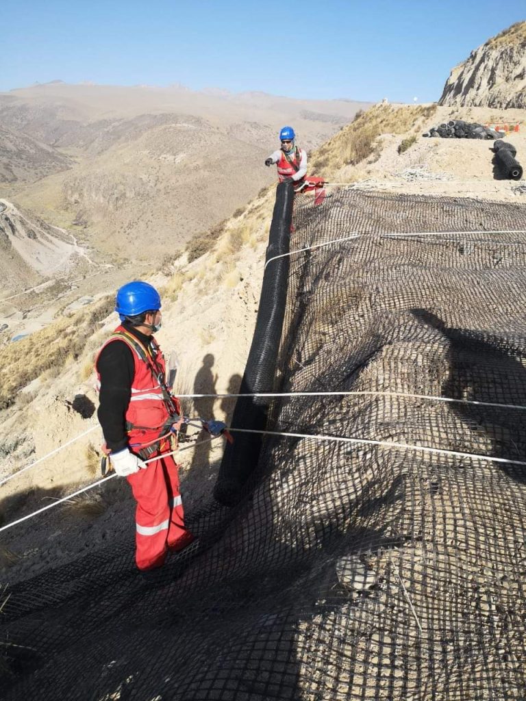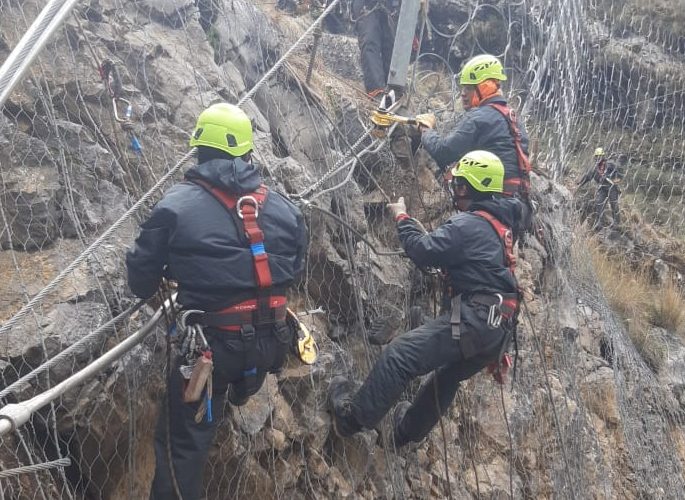 Instalación de mallas antideslizantes de roca.